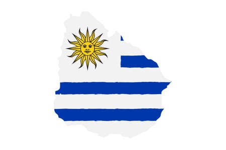 Map of Uruguay with Flag. Hand Painted with Brush. Vector Illustration.