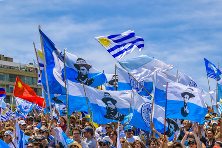 MONTEVIDEO, URUGUAY, NOVEMBER - 2019 - Crowd at political act celebration of the assumption of new uruguayan president luis lacalle pou.