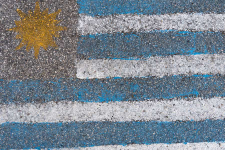 Uruguay flag painted on the asphalt in the country's colors. Alphast texture and paint colors.