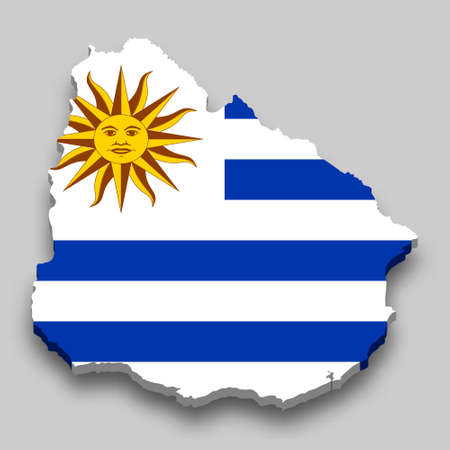 3d isometric Map of Uruguay with national flag. Vector Illustration.