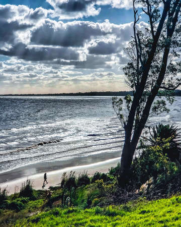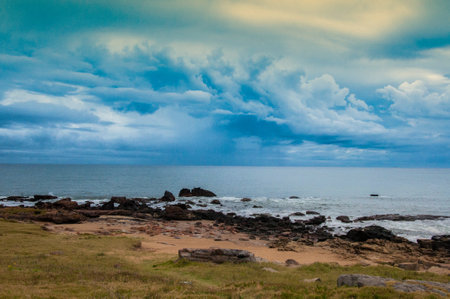 View of the coast of Atlantida in Canelones Uruguay with a cloudy sky