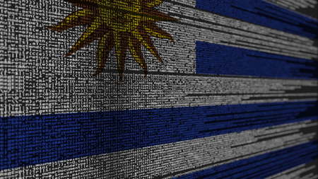 Program code and flag of Uruguay. Uruguayan digital technology or programming related 3D rendering