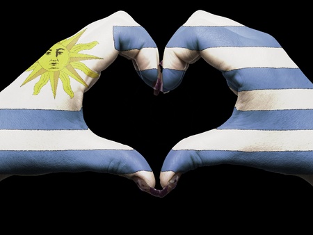 Tourist uruguay made by america flag colored hands showing symbol of heart and love