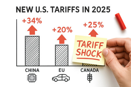 Bar Chart Showing Trump s 2025 Tariff Hikes With Tariff Shock Sticky Note. Concept For Trade War Escalation, Economic Nationalism, Global Market Impact, And U.S. Policy Commentary Visuals