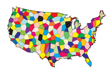 Detailed high quality usa map with pinpointed election areas for analytical review