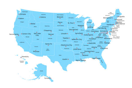 Map of United States of America with states and capital cities. Vector illustrator.