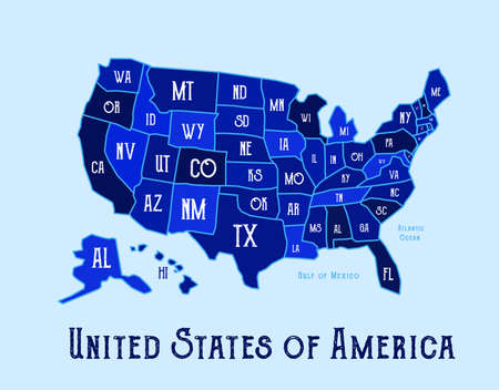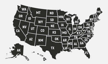 United States of America map with short state names. USA background. Vector illustration