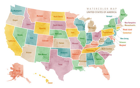Watercolor map of USA, United States Of America