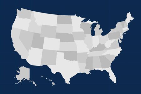 Blank map of United states of America. Vector illustration in grey shades on white background.