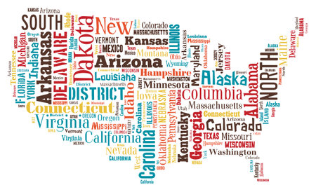 USA puzzle of words by States of the United States of America
