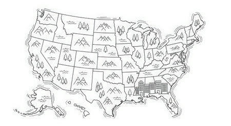 Map of United States with each state outlined