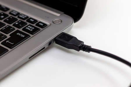 Usb cable ready to connection to laptop, data transmission concept