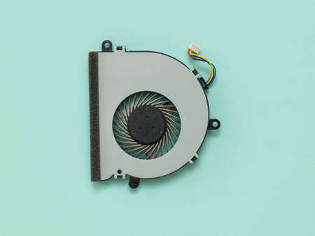 Laptop fan on a light blue background. Repair and restore laptop performance.