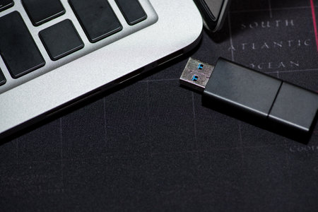 Flash drive on a black wooden table