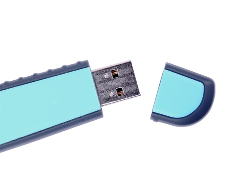 Blue usb flash drive isolated on a white background