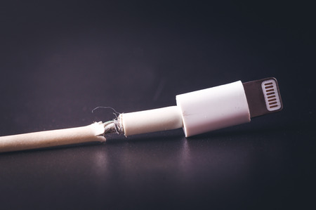 Closeup the Broken Smart Phone Charger Cable on black Background.