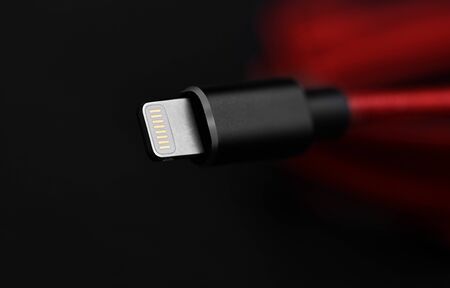 Black usb cord on red background, subject technology