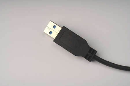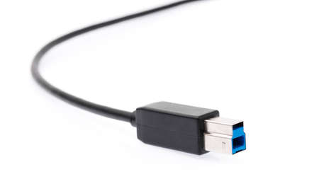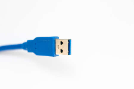 Blue usb 3.0 cable isolated on white background. Macro image.