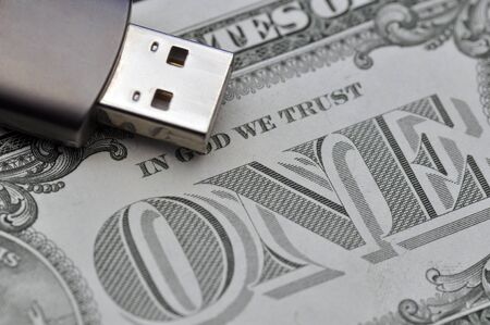 Closeup of usb memory stick on Dollar bill