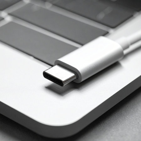 This close-up image showcases a modern electronic connector port, featuring intricate metal pins and a sleek design against a soft background, embodying innovation.