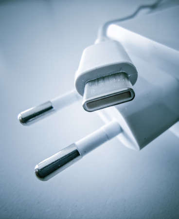 Various types of plugs and cables for audio, video, computer, smartphone and recharging connections. Evolution and change of the types of analog and USB connectors.
