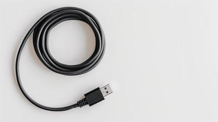A usb cable on white background. Studio shot.