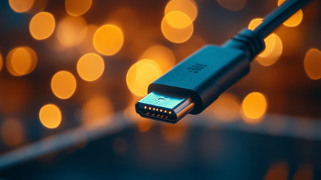 USBC Connector Closeup with Bokeh Lights