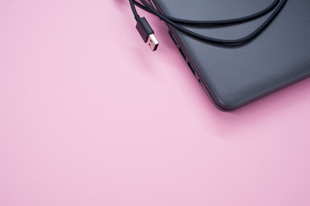 Usb cable ready to connection to laptop, data transmission concept