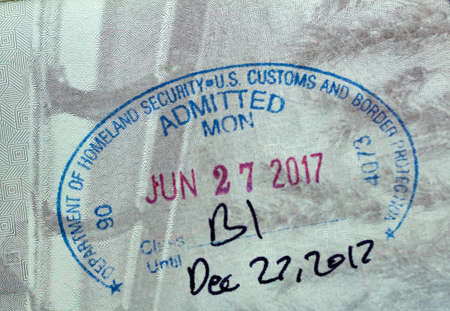 MONTREAL, CANADA - SEPTEMBER 8, 2018: USA Homeland Security Admitted stamp in Canadian passport.
