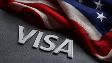 a conceptual image of the word visa with the American flag, symbolizing travel, immigration, and legal entry to the united states