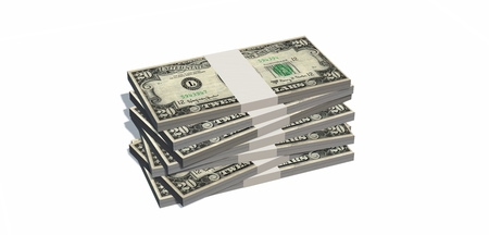 Stacks of dollar bills isolated on white background