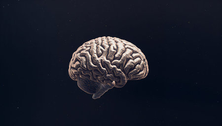 Human brain on light background, highlights and shadows that highlight its texture and contours.