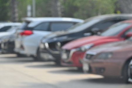 Car parking in asphalt parking lot Outdoor parking lot with fresh ozone and green environment of transportation concept