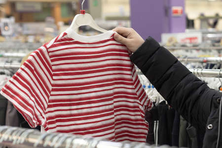 T-shirt on a hanger in a shirt shop