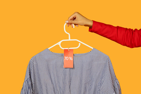 Person Holding Shirt on Hanger With Price Tag