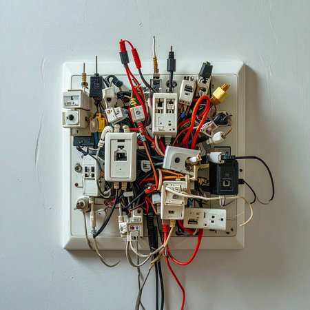 A tangled mess of electrical cords and plugs, emphasizing the need for organization and clean power management.