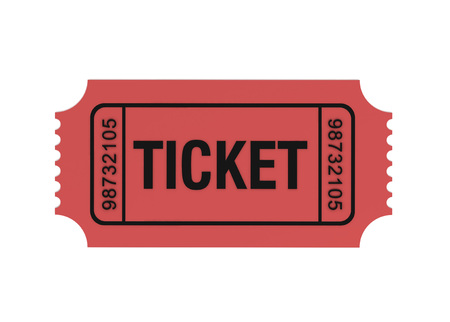 Close up roll of red tickets used for entrance into an event or entertainment isolated on white background