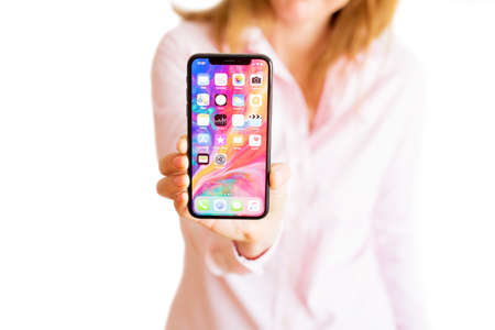 Riga, Latvia - March 15, 2018: Home screen of the latest generation iPhone X.