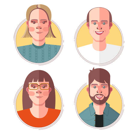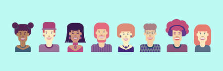 Female an male avatar heads. Various type of women and men faces. Vector.