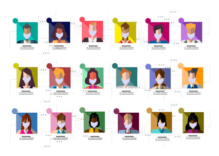 Group of people put mask health prevent plague COVID-19,method protection covid 2019,concept illustration social distance.