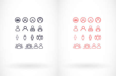 A collection of user and group icons in outline and solid styles, suitable for web interfaces, applications, and digital design projects representing people, teams, and communities.