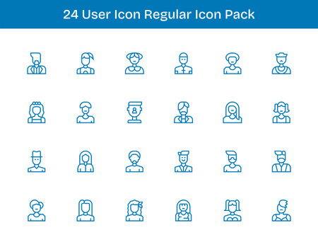 Download 24 scalable Regular Outline icons designed for User Icon, suitable for professional and creative projects.
