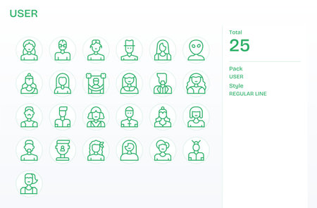 This versatile library offers 25 Regular Line icons representing User Icon, ideal for UI kits.