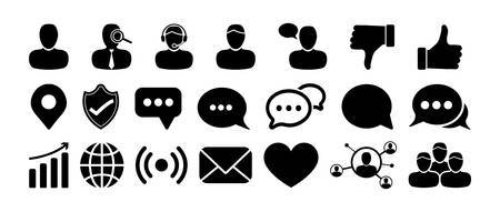 Social Media Icon Set with People, Chat, Thumbs Up, Like Icons
