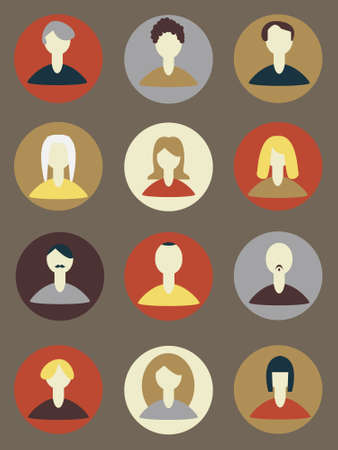 Female an male avatar heads. Various type of women and men faces. Vector.