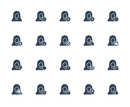 Vector Icon Set of Female User Avatars for Web Account. Glyph Style