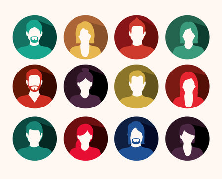 20 people icons, circular