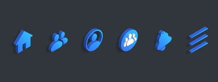 Set of vector illustrations of round icons, buttons and icons in blue