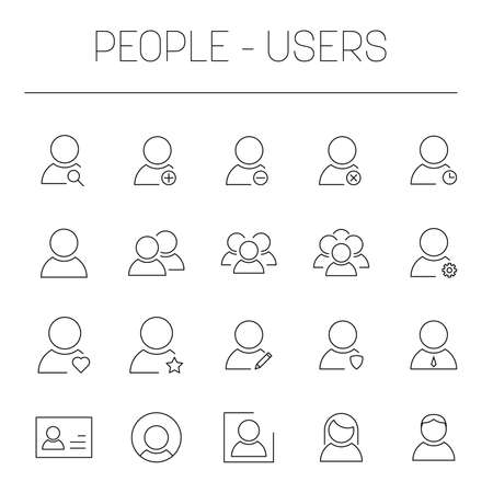 Persons, users and group of people. Simple thin line vector icon set.