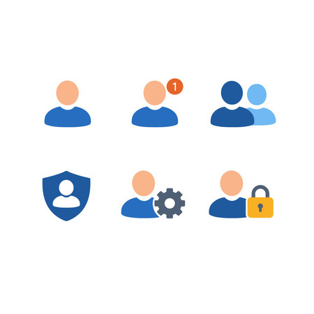 User icons set. User protection, login, password, unlock, settings. Vector illustration